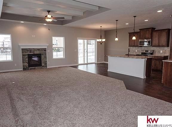Great open concept Monterey. The home features 2 bed and 2 bath with hardwood floors, granite tops in kitchen and quartz in baths, large hidden walk in pantry, s/s appliances and tray ceilings in great room and master. Full Stone Fireplace and Stained Mantel and railings. Covered Deck Passive radon and Sprinkler System Included! Located in Iron Horse. Please call Kristina Philbin 402.305.4031 or Nick Boyer 402.850.1522 for information on this home. For more details please visit our website: www.thehomecompanyomaha.com. Model homes of other floor plans at 1511 N 194th Cir in Elk Ridge (Malibu Ranch Plan) or 7850 S 193rd St in Remington Ridge (Santa Clara 2 Sty). Model home hours are Wednesday - Sunday 1-5 or by appointment. Seller is licensed agent in state of NE and has equity. AMA