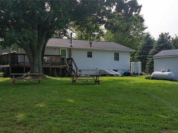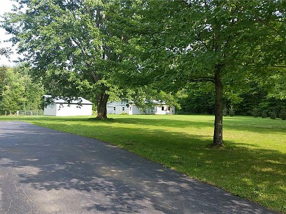 FANTASTIC! 3 bedroom, 2 full bath ranch. 7.7 acres w/38x72 barn w/water & electric, 4 horse stalls, inside chicken coop, & tons of storage. Separate 14x30 run in barn/shelter. Beautiful pond, variety of berry bushes, field area, & spot for 80x140 outdoor arena area. Home has new bamboo flooring, updated cherry kitchen w/new appliances. 1st floor laundry & mudroom. Master bedroom w/master bath. Full basement for twice as much living space. Roof - 6 years old. Use your woodstove to heat with wood through winter to save on heating costs. Nice deck overlooking beautiful barn and stunning property. State trail close by for snowmobiling, ATV's, horse back riding. Peaceful place, country setting, yet 1 mile from the village. Easy access to Rt 11 & Rt 81. TAXES SHOWN W/OUT STAR EXEMPTION.