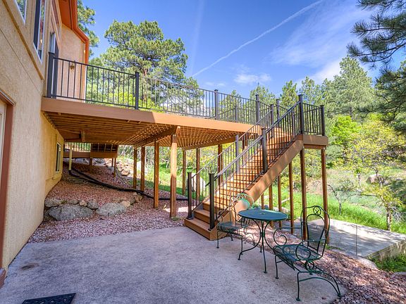 Do not waste anytime making this house your home to enjoy peak Colorado living in this Broadmoor Bluffs home! Nestled in the pines with a spacious rear deck, this immaculate 5,000+ sq. ft. home has 5 bedrooms, 4 baths, 3 car garage, and a walkout from the lower level. The main level has a spacious open floor plan that features a well appointed kitchen. The wall of windows in the great room lets in the natural light while you enjoy the surrounding views and fireplace. The upper level features 3 of the bedrooms, including the luxurious primary suite with fireplace, large walk-in closet, and en suite 5 piece bath.There is a large bedroom and adjoining bath on the main level. The lower level has a guest suite, media area with fireplace and wet bar, and a large storage/workshop area. Inquire directly with Muldoon Associates for more details.