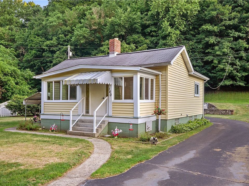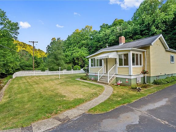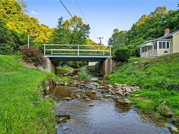 Adorable bungalow on just under an acre in a quiet, country setting on a dead end road. Watch the wildlife or listen to the stream while you sip your morning coffee on the enclosed sun porch. This space is heated with one year old windows and can be used all year. Among the features of the property includes a shed and an outbuilding with electricity and room for a workshop. The fantastic yard also offers a fenced in area and ample parking and ramp access to the back door. The spacious eat in kitchen comes with a refrigerator and stove and opens to the living room with newer flooring. Washer and dryer are also included. Enjoy the peace and quiet while still conveniently located near shopping and restaurants.