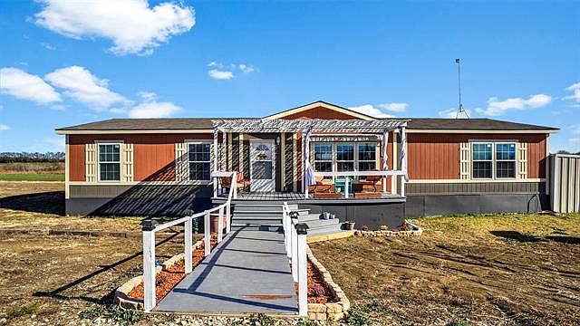Spacious 4 bedroom 2 bathroom home on nearly 2.5 acres near Lake Texoma & Hagerman Wildlife Refuge! This home is 4 bedrooms, 2 bathrooms, and features an open layout with split bedrooms. The kitchen features a large island, farm sink and opens to the living and dining area. Oversized master bedroom with bathroom en suite. Master bathroom features a garden tub with sitting area, dual sinks, separate vanities, walk in shower, and walk in closets. Spacious secondary bedrooms. The backyard has a small storage building and fenced area for small livestock or a dog run. Come see this one today!