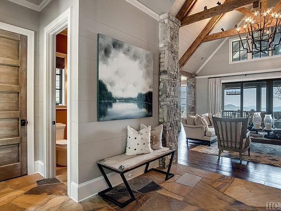 Situated on just over 3 acres in Old Edwards Club, this stunning estate home features a guest cottage, fire pit, waterfall, lush gardens, and a view for miles! This property is a rare find and one you won't want to miss! The courtyard setting includes an array of natural landscaping, breathtaking mountain views and a recirculating waterfall that flows under a stone bridge, past the fire pit and ripples through to a larger waterfall that drops off outside of the master bedroom and napping porch. A mix of stone and cedar shake siding paired with a slate and bronze roof with copper flashing give this home an old world contemporary mountain feel. Upon entering the home, it is easy to see the blend of modern and historic design features. Antique oak floors flow throughout the main house and are accompanied by reclaimed barn wood from Kentucky that was used in building the kitchen island and the entertainment center on the second floor. This home also includes shiplap walls and ceilings that contrast perfectly with the distressed wooden beams, masonry stone fireplaces throughout, and expanding pocketing doors opening the living area to the outdoors and retractable screens. The guest house offers vintage, wide plank wood flooring that were inspired by the well-known Bascom Art Gallery in downtown Highlands along with Lanai accordion folding doors that completely transform the living space and open to the courtyard. Members of Old Edwards will have full use of Old Edwards Club amenities, GlenCove amenities, and amenities at Old Edwards Inn and Spa. Contact us for a full list of amenities. Gated access that is manned 24/7, 365 days a year with paved roads & underground utilities. HOA covers roadways, landscaping, gates, water/sewer & snow removal in the winter. HOA fees include community water, sewer, and high speed fiber optic internet. This home is offered furnished and ready to move in now!