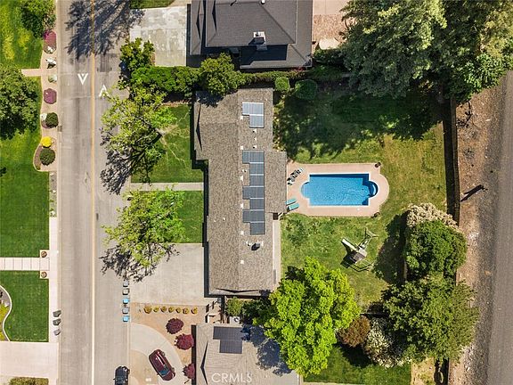 Welcome to Chico's highly sought after Butte Creek Country Club Community. This property in particular stands out among the rest with it's freshly painted classic white exterior. The home sits on a gorgeous .37 acre lot w/ a refreshing swimming pool, owned solar and the luxury of no neighbors behind you. Once inside you are sure to notice the natural light through all of the large windows and the comfortable feeling that this home exudes. Walking you through the floor plan, from the entryway you'll find a living area to your right. This space is adorned with wood beamed ceilings, a white stone wood burning fireplace and one of the many accesses to the backyard. The living room also opens up to the kitchen and dining areas keeping everyone a part of the action. Heading in the opposite direction from the entry there is another cozy den area with beautiful floor to ceiling windows and an additional access to the backyard's covered patio. Down the hall you'll find 2 nice sized guest bedrooms as well as a hall bathroom w/ double sinks, tub and shower. The primary suite was renovated with 2 new custom closets, a spa-like bathroom and french doors that again, take you to your exterior retreat. Currently the owners enjoy swimming, bbqing, playing on the playscape and watching sunsets in the backyard but this space hosts additional opportunities such as a gardening or even a potential guest house site. Lastly, we must mention that in the last 6 years the whole house has been outfitted with a NEW ROOF, luxury vinyl planking flooring, new HVAC & ductwork system, tankless hot water system, new pool equipment, refinished surface of pool, removable Guardian pool fencing, updated top of the line lighting, paint and more! The Butte Creek Community is a special neighborhood with lots to offer. The country club is only steps away and offers golf or social memberships that include access to the 18 hole golf course, driving range, bocce ball courts, indoor/outdoor dining, special events and talks of potential pickleball courts in the future. Residents of the Butte Creek community also enjoy nearby bike trails, walking trails with swimming spots & a rope swing, golf cart cruises, convenience to the freeway and more without the price of an HOA. Come check out this lovely home ASAP as opportunities to join this community does not come up too often.