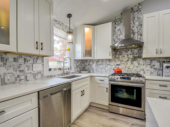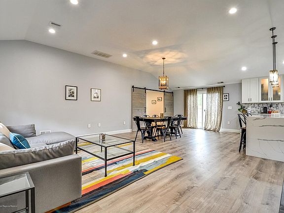 Welcome home! NEW, fully renovated 3 bedroom Brick/Cedar ranch with radiant heat flooring! NEW: Gourmet White/Gray Kitchen with quartz counter tops, white cabinets with tile backsplash center island, Samsung stainless steel appliances, 5 burner SS stove, grey/white decor, potfiller, new flooring throughout home. Large Open Floor Plan Foyer, Formal Living Room, Dining Room Combination & Kitchen w slidiing doors our to large stampled concrete patio and fenced yard. Barn Doors lead to Family room w w/b fireplace w/vents to heat rm w/sliding doors out to yard. Large Master bedroom w/updated bath with radiant heat tile floor. Two additional bedrooms w/full bath. Two car garage w asphalt driveway. New roof, freshly painted. High hats, high ceilings, beautiful rustic decor! Easy commute to NYC!