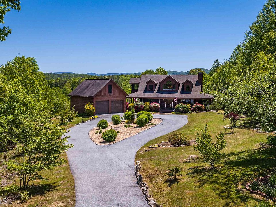 Charming home sitting at the end of a cul-de-sac lot inside this one lane neighborhood. The wrap around porch offers outdoor living with amazing pastural views. This home offers an open floor plan with floor to ceiling stone fireplace and lots of windows for great nature lighting. The kitchen boast exotic granite, pine cabinetry and a breakfast bar along with dining area. Huge laundry room with cabinets and laundry sink. Master bedroom is oversized with a screened porch with its own private access, the master bath offers a double vanity,jetted tub as well as a steam shower. The loft area offers a nice spot for your home office. Secondary bedrooms are good size and the guest bath offers step-less entry shower perfect for wheelchair access. There is a 2 car detached garage offering stairs leading to 2nd floor storage area and the crawl space is very easily accessed with plenty of room to stand and walk around and is great for storage as well. This is such a beautiful setting less than 10 minutes to Ellijay situated in a very quiet neighborhood with gated entry and paved roads.