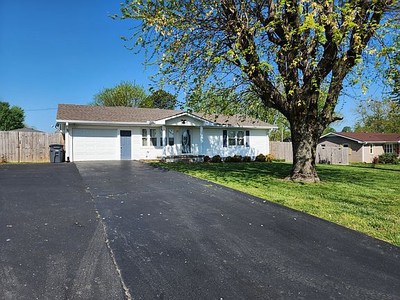 Beautiful home in town yet country feel! This home has been completely remodeled in the last 5 years! The home is vacant and move in ready! Paved drive, treed yard, privacy fence surrounding the spacious back yard, 2 large outbuildings, covered front and back porches! The home has laminate hardwood and tile throughout, gas fireplace in the large living room, attached garage, bath is like new with a large shower, windows have been replaced! Come and look you will not be disappointed!