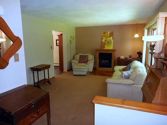 Nestled in the trees with unruffled landscaping, this two-story home offers two parcels of private green space; 2.76 acres with the house and the 2.16 acre adjacent lot. Beautiful open kitchen and dining area with a door out to the deck overlooking the property. Also offers first floor laundry, spacious finished basement space, two-car garage, master bedroom with master bath, and much more.
