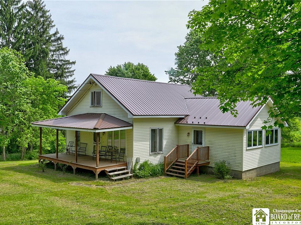 A quaint bungalow style home that sits on approximately 8 acres of land. As you enter the home from the front door, you come into the living/dining room. This room features hardwood floors and updated windows. Off the dining area is a set of glass french doors that leads to a potential family room. Construction has been started - just needs your finishes. The family room is surrounded by windows taking advantage of the countryside views. The kitchen is updated and overlooks the back yard/field. The main level also features a spacious bedroom, a flex room that could be an office or second bedroom and a full updated bath. On the second level is a spacious finished attic area that could serve as an additional bedroom. The full basement has exterior access. The home has maintenance free vinyl siding and a relaxing covered front porch. There is a small cabin out back for overnight campouts. Here is your chance to own a home in the country, yet is close to all the amenities you will need.