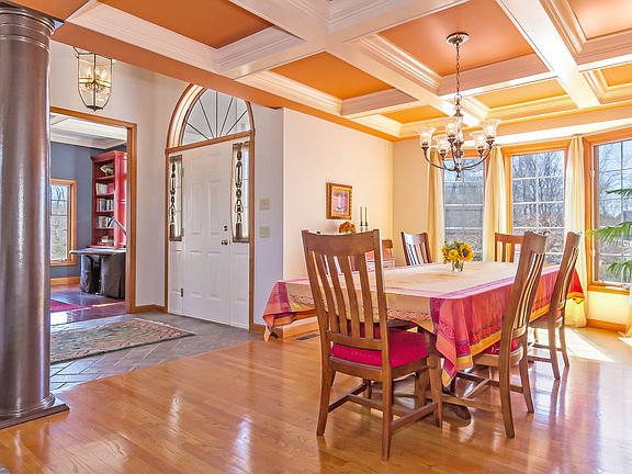 Stunning quality constructed Cape on beautifully professionally landscaped low maintenance lot. This is the home for you if you desire a First floor Master sanctuary! The Master suite has a sitting area and a double sided gas fireplace that you can enjoy while relaxing in your Jacuzzi tub! Recently remodeled, the bathroom has a separate toilet area and an Italian marble double vanity. Flexible floorplan includes large eat-in kitchen with two sided gas fireplace and New Stainless Steel appliances, oversized family room and library. Gorgeous updates include coffered ceilings in the library, dining room and hallway. Oversized windows bring the beauty and serenity of the outdoors inside. Partially finished walk-out basement. Newly finished walk-in closet on the second floor could also be a playroom or media room. The 1.86 acre lot abuts 200 acres of non-buildable state forest. Watch the video to get a feel for the private lot! This house is turn-key and not to be missed!
