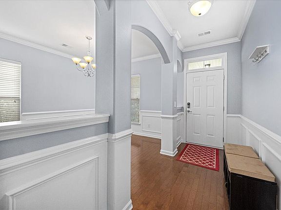 Welcome to this exquisite 5-bedroom, 3-bathroom, 2-story home that epitomizes comfort and elegance. As you step inside, the living room welcomes you with the warmth of a cozy fireplace, creating the perfect ambiance for gatherings and relaxation. The heart of this home is the inviting eat-in kitchen, complete with bar seating for casual dining and fostering an atmosphere of togetherness. Hosting guests is a breeze with a first-floor bedroom featuring an adjacent full bath, ensuring comfort and privacy for your visitors. For formal occasions, the dining experience is elevated in the elegant formal dining room adorned with beautiful wainscoting and chair rail details, creating an air of sophistication.The upstairs owner's suite is a sanctuary of luxury, boasting a garden tub for indulgent soaking and not one, but two walk-in closets, providing ample storage space. A sprawling rec or loft area on the upper level offers versatile possibilities, whether for entertainment, a home office, or a creative space. Embrace the tranquility of the outdoors in your fenced backyard, overlooking a picturesque wooded lot. The backdrop of nature provides a serene setting for outdoor activities, relaxation, and cherished moments. This home offers a harmonious blend of functional living spaces and refined features, providing a haven where comfort meets style. Don't miss the opportunity to make this exceptional property your own and experience the lifestyle you've been dreaming of. Sanctuary Cove at Cane Bay Plantation, a resort-style masterplan community designed for every family type. Located in Summerville, SC, residents enjoy luxurious community amenities such as a beautiful swimming pool, nature trails and scenic lakes, along with access to the new YMCA which is in walking distance of Sanctuary Cove and features a 54,000-square-foot sports facility. From front porches and friendly neighbors to hiking trails and parks to play in, Sanctuary Cove is like no other community. As an added perk, this beautiful home is zoned for the highly sought after Cane Bay Elementary, Middle, and High Schools. Don't miss out!