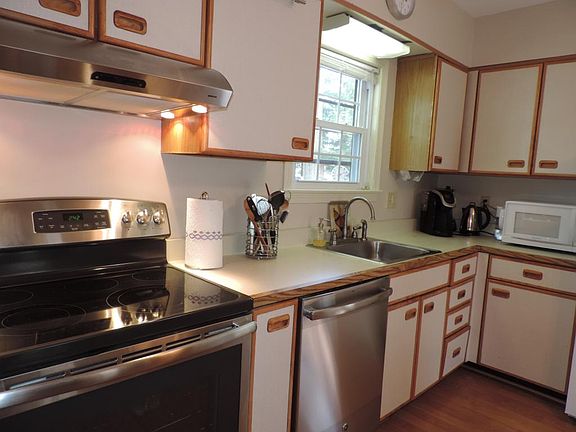 Perfect Location! This quiet end unit Townhouse has the country setting you're looking for. Easy commute - within a mile from I-93 & with Market Basket, Walmart & many other stores close by. Main floor features an open floor plan, bright living room w/bay window, eat-in kitchen w/pantry, new dishwasher, new electric range and laminate flooring throughout. You also have a washer/dryer, bath and access to the back yard w/room for a table & grill and has a peaceful view of the river. Great spot to enjoy at the end of the day or anytime! Two spacious bedrooms on 2nd floor with new high-end laminate flooring...Master Bedroom w/wall of closets, wall ac, & ceiling fan. Attached full bath with 4' vanity and separate toilet/tub/shower combo. 2nd bedroom w/ceiling fan & with access to a large walk-up attic for storage or room to expand. New heating system, on demand water-heater & windows (except Bay window) Condo fee includes water, sewer, snow & trash & road maintenance. Two parking space