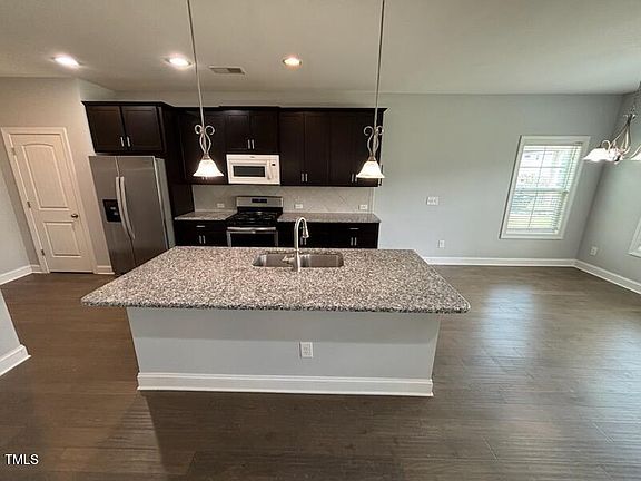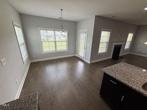 Beautiful 4 BR / 3 full bath home right off Rt/ 70, one mile from Grifols and just minutes from the heart of downtown clayton. Includes a first floor master bedroom with shower and spa tub, with 2 additional bedrooms on 1st floor. The second floor features sprawling bonus room plus a 4th bedroom & full bath. Open floor plan with all the upgrades including stainless steel appliances, wide planked hardwoods in main living areas, a spectacular kitchen w/granite, tiled backsplash and a large island bar. Enjoy relaxing in the rear covered porch overlooking a flat lot. Exterior stone accents. All Natural Gas-HVAC, water heater, stove, fireplace!