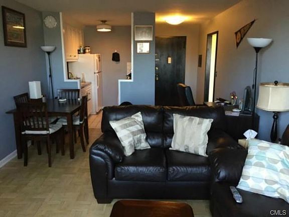 Sunny one bedroom condo in downtown Stamford with southeast exposure. Close to restaurants, shopping, parks, library, mall and more. Assigned parking space. Heat and hot water included in monthly rent. This unit features dishwasher, 2 programmable AC units, bleached parquet floors, updated bath and kitchen with gas cooking! Lighting fixtures from Klaffs. Move right in . Convenient commute to Metro North train station under 30 minutes