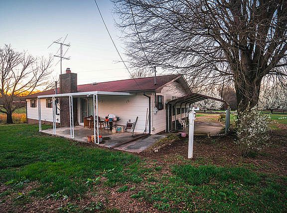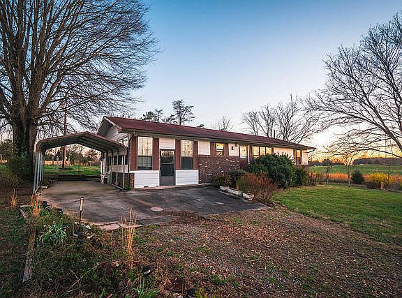 Charming brick and wood siding home. Great location. Nice flat lot with 1.85 acres. Inside has 2 bedrooms and 2 full baths. Each room has its own heat source. Has living room and a dining/den/entertainment room with gas and wood burning stoves. Utility room has washer and dryer hookup. Outside has two storage, one could be a storage or was used as a greenhouse. Carport room is finished with carpet could make as an additional room.Water heater may need replacing. Sellers Home Warranty is provided.Possible for Renovation lending to update and make it your.