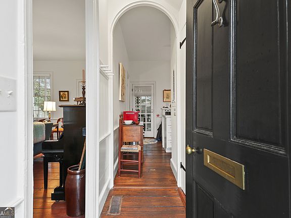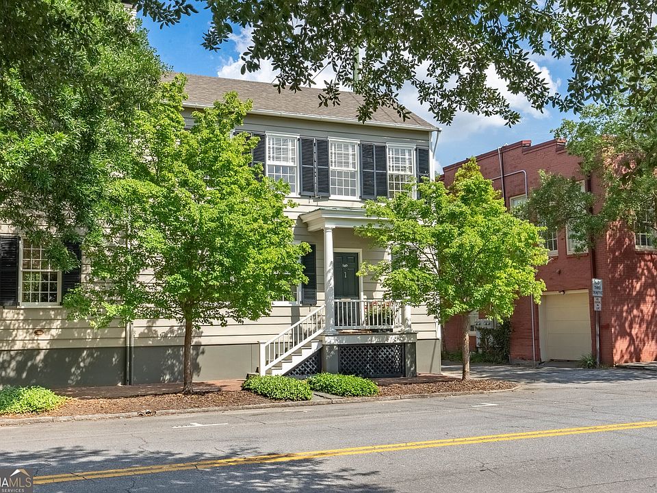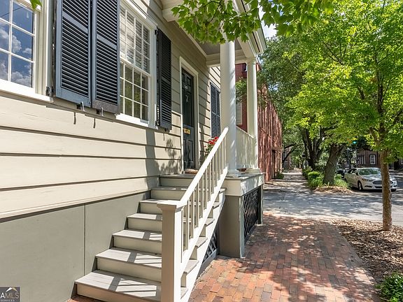 This southern half of the Frederick Ball double house is part of an elite group of residences academically and meticulously restored during the 1990s by Mills Lane IV of The Beehive Foundation in partnership with historic preservation architect Harvie Jones of Huntsville, Alabama. Their goal was to restore important houses as authentically as possible yet have them serve as livable residential properties. Early 19th-century carpentry and finishing techniques were used whenever and wherever practicable. The house has substantial original fittings including rare 12 over 12 window sashes, two mantels, the staircase, a lovely archway with a lantern hook in the front hall, most of the woodwork, with wainscoting and pine flooring throughout. The original floorplan was restored except in the southern back quadrants, which were configured to house the modern conveniences of a kitchen and half-bath on the first floor, and a full-bath area, washer and dryer, and a large walk-in closet on the second floor. A modern, Federal-style double-porch, appropriate for the house and typical for Savannah, was added off the back of the house during the 1990 restoration to create additional living space. The cottage has a courtyard and off-street parking. The restoration of the three Frederick Ball houses (the main house and the double house next door) received a 1991 Preservation Award from Historic Savannah Foundation. Due to the many substantial changes made over time to the northern half of the double house, this southern half is now under protective covenants with The Beehive Foundation. The Frederick Ball Houses are located on Columbia Square, are centrally located within Savannah's Historic Landmark District and in walking distance of most anywhere within the area. Full documentation of the restorations of the three Frederick Ball Houses, including plans, photographs, and correspondence, is on file at The Beehive Foundation in Savannah, Georgia.
