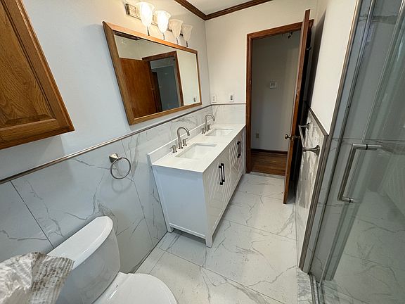 This charming two-family brick home features fresh interior paint and a newly renovated bathroom. The first floor includes a spacious living room and dining room combination, along with an eat-in kitchen, two bedrooms, and a large bathroom with double vanities. Enjoy access to the backyard, and find a washer and dryer, as well as extra storage, in the basement. There's driveway parking available. Please note, no pets and no smoking allowed. A credit report, application, and interview are required. This immaculate home is a must-see! The listing agent is related to the owner. Tenant pay for water and electric. No smoking. Parking is available.