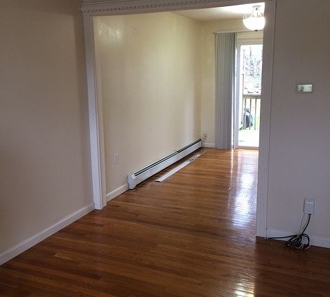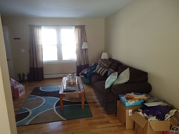 Off of the main road with easy highway access, great neighbors, end unit, hard wood & tile flooring on main floor, heat included with individual thermostats, bright, updated, newly updated bathroom, clean, deck and yard, spacious, gazebo and pond on premises on an 8 acre property, nice views from every window HEAT INCLUDED, individual thermostats, water and sewer included, washer/dryer hookups in basement, great yard, pond, gazebo, close to highway but nestled in the woods. updated, open floor plan, spacious