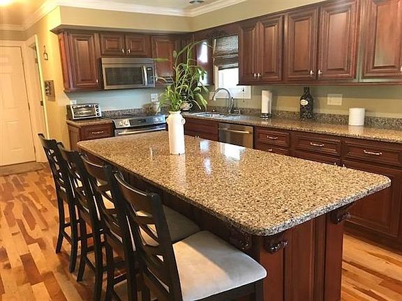 Beautiful home located at the end of a dead end street would make a wonderful location for any family. This home has recent updates with more renovation in progress. The modern kitchen with all high end Jenn Air appliances and solid surface tops and large island was recently installed. There is a masonry fireplace in family room and also one located in the unfinished basement. The unfinished basement also has roughed in plumbing for a 4th bath and could be finished out for additional living space. There is lots of crown molding in lower level and the upper level is in the process of being trimmed out with new baseboards, door trim and crown molding. The Trane XL heat pumps are very efficient resulting in low utility bills. It is on KU electric and there is city sewer available in the yard but has not been tapped. The garage is a good size and offers plenty of storage. The new replacement windows, new exterior trim and gutters complete this makeover. This is a must see.