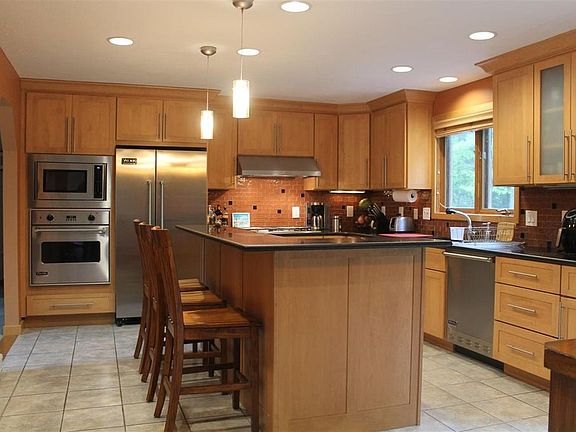 Welcome Home to your custom contemporary at the end of the Cul-de-sac with amazing privacy and space! Enter into the large mudroom/sitting room with cathedral ceilings. From there you go into the kitchen featuring Viking appliances including the refrigerator, dishwasher, oven and trash compactor as well as a wolf gas range. The Kitchen also features a huge island with breakfast area, tile back splash and granite counter tops and a slider to a oversized mahogany deck. The kitchen has two openings into the huge family room with cathedral ceilings and ceiling fans. You also have a first floor master with large double closets, cherry flooring and a spa like master bath with double sinks, walk-in tiled shower and a washer and dryer area with shelving. On the second floor you have 2 extra bedrooms, a open area for a office /living room and a bath w/dual sinks, Jacuzzi tub and tiled shower. The basement is partially finished (no finished ceiling in open area) and features an additional family room area and additional washer and dryer hookups as well as a walkup staircase that leads to the oversized 3 car garage with direct access to the back yard and storage above. Home also has central air, central vac, additional paved area outside to park your toys, a small fenced in area out back for dogs, huge flat lot, skylights throughout, and a super flexible floorplan for different living situations. True custom homes are super rare don''t wait!!