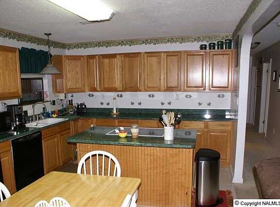 Fantastic five bedroom, two bath home in Priceville School District. This home has tons of cabinets in the kitchen with island and tile floor. Kitchen open to great room. New vanity in master bath Roof is only 18 months old The garage is 30x24, lots of space! 18x18 concret pad in back for storage. 2.5 acres, some open, some woods.