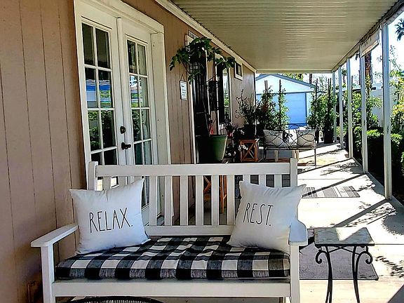 A perfect location, in the middle of the community this home is beautifully finished. The patio outside is wonderful for our weather when you want to entertain and the home is certainly a WOW. The pictures show you everything. Be sure to notice the French doors leading from the living room to the patio. And the bench wrap around dining table is very special. You have a living room and a family room. Plenty of room! The third bedroom is being used as an office now, but does have a closet space. The solar panels from Sunrun were installed two years ago. Be sure to ask me about it! Some furniture is available per inventory list. It is very important to understand this community is very strict on residents proving verified income to match about $2700 each month. This can be social security and/or pension or a paycheck. One dog is allowed unless you have also one that is a verified service dog. This community is really great for activities if you like to participate. There are two pools, a great spa, tennis courts and pickleball, billiards, and a library besides a very nice dining hall. Our pickleball group is very active! The shuffleboard building is state of the art. Come and see for yourselves!