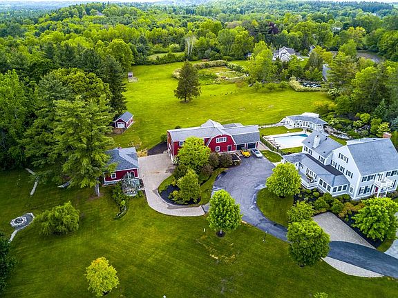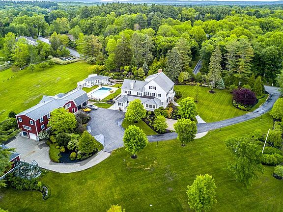 Welcome to New England country estate living. Beautifully situated on 15+ acres of land, the property offers over 8000 sf of living space and state of the art smart home technology. This is a one-of-a-kind home with hardwood floors throughout and beautifully crafted crown molding. The sun-drenched kitchen includes two Bosch dishwashers, oven and microwave, Wolf 5 burner cook-top, steamer, and two fridge/freezers with granite counter tops. The master bedroom features two California walk-in closets, auto retracting TV, changing room, gorgeous master bathroom with European style spa tub, bidet and steam shower. Completing the estate are a heated salt water pool, cabana, waterfall and koi pond, private riding trails, heated insulated garage and finished barn. The barn boasts ample garage space, an art studio, home movie theater, and expansive entertainment with full service wet bar with dishwasher. Unparalleled beauty, style and sophistication!