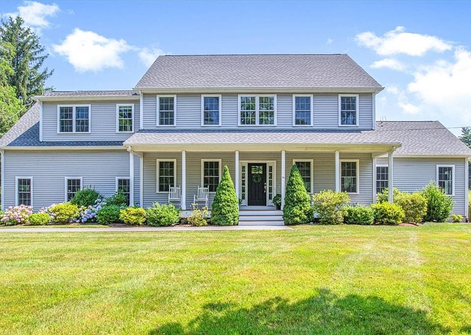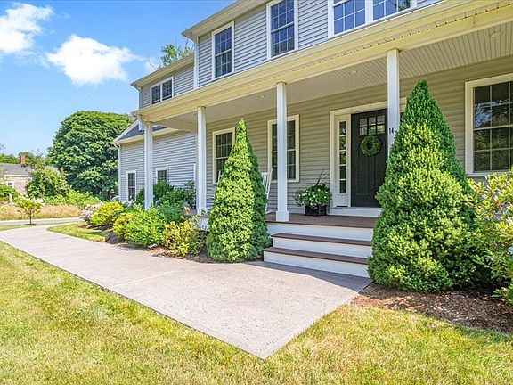 Summertime and the living is easy at 140 High Street. Kick back on the farmer's porch and enjoy your morning coffee and listen to the birds sing. Built in 2017, this stunning 4 bedroom Colonial is turn-key. Open floor plan makes entertaining a breeze. Soaring ceilings, beautiful hardwood floors, gas fireplace, and an inviting, comfortable home showcasing a white kitchen, formal dining room, spacious family room, plus living room and powder room. Step outside to the back deck and patio overlooking the private backyard surrounded by conservation land. Upstairs you will discover 4 generous sized bedrooms, inclusive of a primary suite with walk-in closet and spa like bath. Second floor laundry and full bath too. Huge unfinished lower level is full of possibility. 2 car garage, storage shed, central air, generator. Set on historic, bucolic High Street. WOW!