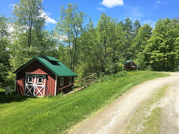 Beautiful Gambrel house with cathedral ceilings on 11.63 quiet acres. Long driveway off of a well maintained dirt road 2 miles from town. 2 car heated garage attached to house. 2 fire places, new roof (2015), flagstone mortar replaced on chimney (2016), carpet replaced (2017), tile installed in downstairs bathroom and entryway (2017), painting is currently happening throughout the house, wood/oil furnace (forced hot air) 20' by 20' fenced-in raised gardens, chicken coop, sugar house (hasn't been used in a while) and a one car out building. Plenty of wildlife to watch. Come see your new home today!