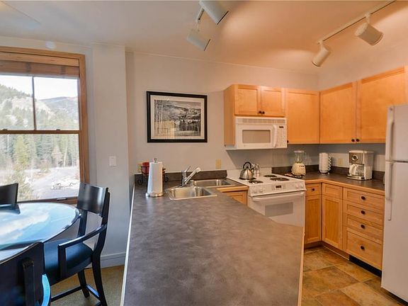 This oversized corner condo is a great value! The vaulted ceilings are sure to make you feel like you've stepped into a lofted condo - no one above you & only mountains around you. Well appointed & fully equipped kitchen has plenty of space & full-sized appliances. Extra windows & skylight. Superior location in the heart of River Run Village near the ski slopes, shopping, dining, events & bus route. Convenient amenities incl. hot tubs, pool, fitness area, underground parking, elevator, & more.