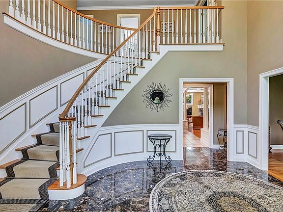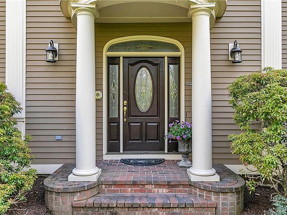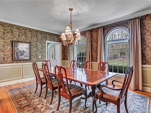 PREMIER SUBDIVISION Quality built home in one of Guilford's most upscale neighborhoods, known as The Woodlands. One of the larger homes sitting on a 4-acre lot at the end of the cul-de-sac boasting over 5,600 sf, 5 bedrooms, 4 full and 1 half baths. This home offers a functional open floor plan with formal dining and casual living spaces. The eat-in kitchen with breakfast nook, granite counter-tops, tile backsplash, stainless steel appliances, custom cabinetry w/built-ins, center island and Butler's Pantry flows easily to the family room. The family room features beautiful coffer ceiling and a wood-burning fireplace. The living room shares a through-and-through gas fireplace with the home office. Home offers a first floor bedroom en-suite. Sliders open to the patio which overlooks a peaceful, wooded backyard. Four additional bedrooms are on the second floor, including the master suite with a deep tray ceiling, walk in closet full bath. A gas fireplace and extra room enhances the master bedroom suite. A 3rd bedroom offers an en-suite with a full bath. The bonus room built-in and a second staircase provides a fabulous recreational space. The laundry room is conveniently located on this level. Additional features include built-in speakers, central A/C, central vacuum, Palladium windows and a 3-car garage. Note, there is room for a pool, the septic system is in the front.