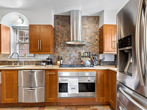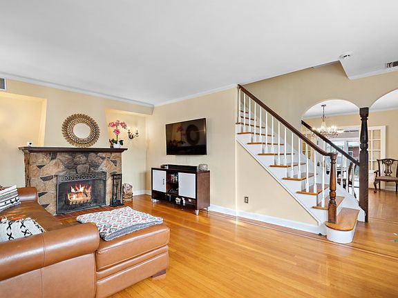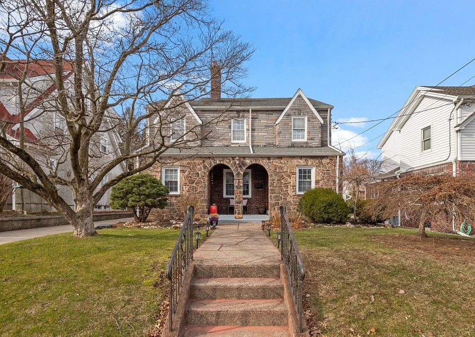 One of kind Stone French Provincial Home. Large living room with fire place, dining room, custom kitchen with high end stainless steel appliances. Also den/office, half bathroom and Florida room opens to paved patio and fenced in private yard. Three nice size bedrooms, full master bath and W/D room on the 2nd floor. Completely finished basement with large rooms and full bath. House has 3 zone gas heat with central Air, two car detached garage and just steps to NYC Bus and walking distance to train station. Highest and Best by Monday at 5:00pm 2/1/21