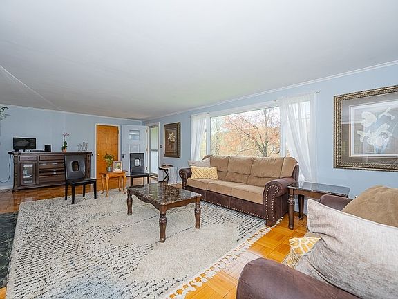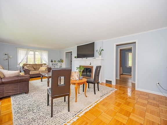 Sitting proudly on over four acres of land, this sprawling ranch offers so much more than exceptional views! Topping the list is the expansive living room with oak parquet flooring, a wood fireplace, built-in shelving and loads of natural light! Kitchen with granite countertops and ample cabinetry is large enough to eat in--but why bother when you have a convenient formal dining room right around the corner? Primary bedroom with Jack and Jill style bathroom offers great space and privacy. All 3 main floor bedrooms tout oak plank flooring. Main floor also includes a half bath with laundry hookups and a gorgeous 3 season sunroom- just begging for your company! Walk up attic offering convenient but not the only storage space, as the unfinished room in the lower level will easily house any items you don't use regularly. Plus 756 sq feet of finished space is broken down beautifully into a full bath and two additional rooms. One has it's own private entry and would make the perfect office!