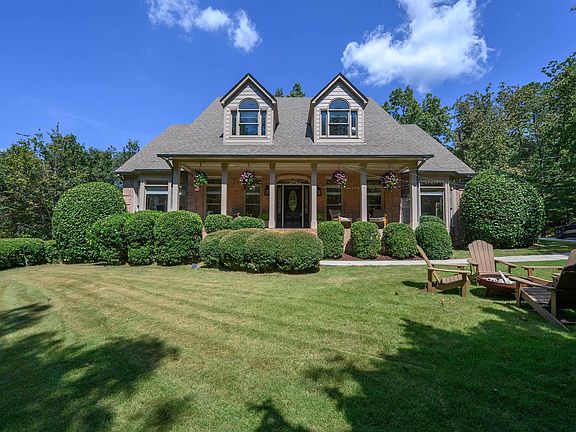 Sprawling 6BR/5.5BA estate in coveted Olde Weatherly on 3.7 private, wooded acres! Enjoy peaceful views of grazing deer from the front porch or the large covered/open deck overlooking the flat backyard. Main level features mostly hardwood floors, a lovely eat-in kitchen with island, gas cooktop, wall oven, microwave, and fridge. Massive great room has stunning fireplace and lots of natural light. Primary suite includes a sitting area, huge walk-in closet, and spa-style bath with jetted tub, shower, and double sink vanities. Second main-level BR with ensuite bath. Formal dining room, keeping room, half bath, laundry, and 2-car garage also on main. Upstairs offers 3 large BRs, 2 full baths, enormous family room w/ fireplace, bonus room, and walk-in storage. Finished basement includes in-law suite with BR, bath, den, and kitchen plus a 2-car basement garage and more storage. A rare find with space, privacy, and timeless charm!