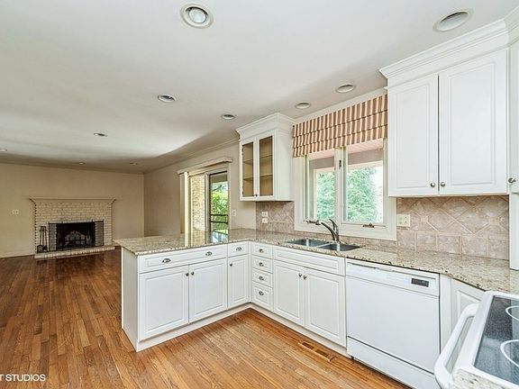 Lovely Ranch welcomes you with foyer open to Living Room with Vaulted ceilings and sliding doors to a patio. Home features Hardwood Floors throughout the entire sprawling floorplan. Includes a Primary Suite with walk-in closet and two nice size additional bedrooms. The Kitchen is open to Family Room with Fireplace and sliding doors that open to a nice additional side patio. The enormous full basement with access to outside is ready for your imagination! The attached two car garage provides plenty of space for vehicles and more. Original owner has cared for this home, being sold AS IS Not a short sale, will require approval.
