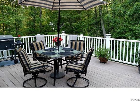 New coat of paint on the exterior, makes it look almost new. All kinds of room, with an in-law suite which includes a family room and extra bedroom. Upgrades in the last couple years include bathrooms, kitchen (countertops and flooring), large deck, and new lighting. Last few years upgraded HVAC and put new roof on the house. Handmade cabinets in beautiful kitchen, with natural light. Large outbuilding that was used as a woodshop could be office or storage, plus plenty of room in the unfinished heated basement. Property extends to King William Recreation fields with woods and stream in the back. Seller willing to give $4000 to closing.