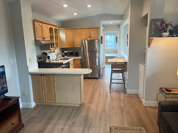 FURNISHED! Great location for long vacations, sabbaticals, extended work assignments or home! Close to all - train, coaster, buses, shops, dining, coffee shops! Come enjoy the beach lifestyle and charm of Encinitas in this one bedroom furnished guesthouse located just steps to the surf and sand! Located 2 blocks south, the popular and vibrant Moonlight Beach is full of activity with volleyball courts, fishing, snack bar, firepits, barbeques, recreational rentals, and a children's playground. Alternatively, 2 blocks north, Stonesteps is a quiet and relaxing neighborhood beach, providing a peaceful reprieve to enjoy the warm water and sun. After a day soaking up the surf and sun, enjoy the diverse restaurants, coffee houses, and shopping Encinitas has to offer. Or take a long bike ride or evening stroll on the 2 mile long Neptune Avenue, recently nominated for the "most beautiful street in America." Light and bright, this completely furnished and private entrance upstairs guesthouse comes with full amenities including full kitchen, washer/dryer, balcony, dishes, internet, two Smart TVs. Encinitas, located in north San Diego County, is centrally located to many popular attractions in San Diego, Orange County, and Mexico. Amongst other activities you'll find the Del Mar Horse Races/Fair/Track, LegoLand, Wild Animal Park, Sea World, San Diego Zoo, and Disneyland. No smoking, No dogs. Owner pays water and internet. Tenant pays trash, gas and electric.