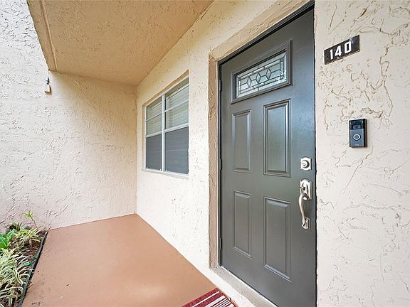 Welcome to 140 Lake Constance Drive a brightful Updated turn key condo that embodies the essence of Florida living. As you enter, you'll be greeted by an open and airy layout, featuring a spacious living area with abundant natural light. The expansive patio with beautifully landscaped in front and the back is located in a large lake with beautiful sunset views and a satellite private pool feet away from backyard. Kitchen with Large closet pantry, plenty of storage closets, 2 full bathrooms completely renovated, new a/c heating unit, new breaker box, freshly painted in a neutral color and updated electrical outlets, new window blinds, new lighting features and hunter ceiling fans, assigned parking.