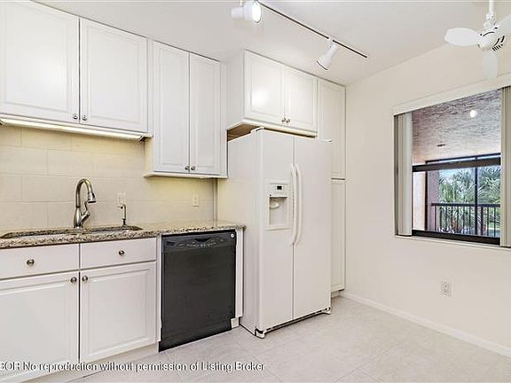 Beautifully updated, pin clean, lake & pool front apartment w/ a light & bright floor plan. Some of the many features include: beautifully updated eat-in kitchen w/granite countertops, wooden kitchen cabinets, under cabinet lighting, pull-out shelves, 3-stage under cabinet water filter; 22x22 porcelain tile in the living room, kitchen & hall; wood bathroom cabinets w/Silestone countertops & 24x24 porcelain tile; Master suite w/walk-in closets & organizers; newer lg. PGT hurricane impact sliding glass doors in the attractively appointed balcony w/24x24 porcelain tile; washer/dryer in unit; ceiling fans in kitchen, bedrooms & balcony; storage unit. This building was recently renovated: concrete restoration, painted, new balcony screening & new roof.