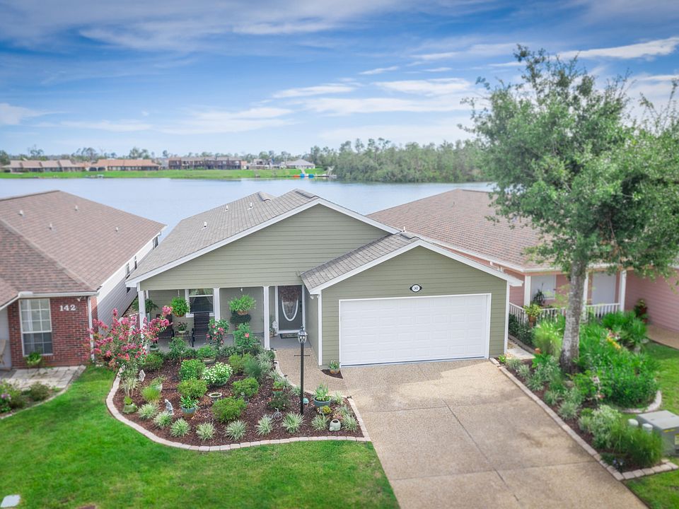 Lovely Waterfront Home - Open Concept. View of lake as you enter the home, laminate flooring w/Natural shading, carpeted BR's, baths tile flooring. Current style ceiling fans & lighting, walls of orange peel design, ceiling of knockdown texture, interior paints of earth tone colors. Kitchen-Stainless steel appliances, recessed lighting, granite countertops, county oak cabinets, breakfast bar. Master BR in rear of home w/view of lake, walk in closet, bath w/granite counter top, walk in shower. Third bedroom is currently been used as office. Landscaped gardens w/ sprinkler systems. Enjoy quite time on screened back porch or fishing, swimming & boating in lake. Lake Marin is a small secluded community offering quick access to main highways. A must see to fall in love with