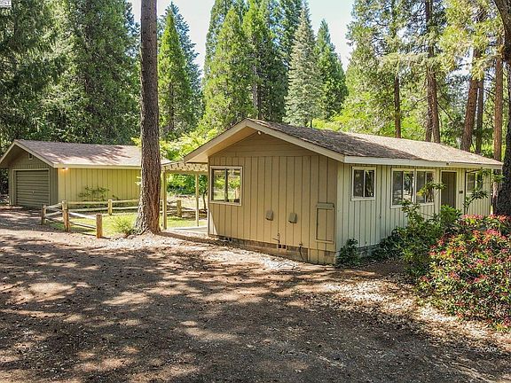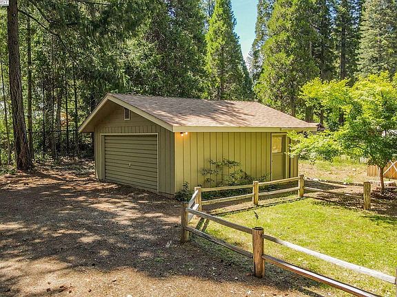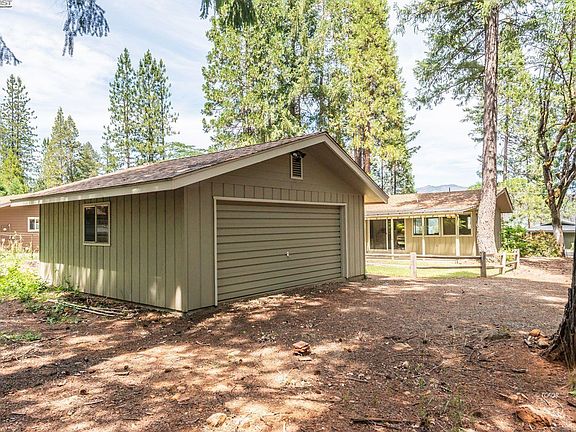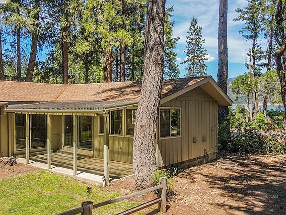 Super cute 2 bedroom, 2 bathroom home with a 2 car garage on . 28 of an acre in Trinity Center with Trinity Lake views. Vaulted knotty pine T & G ceilings, large slider to the covered back patio from the living room, as well as lake views, comfortable kitchen, quaint dining area. Primary bedroom is large and has a slider to the back patio as well. Guest bedroom is located in the front of the home. Laundry is conveniently located in the hall closet. Back patio has a private setting and is great for all your outdoor entertaining, charming back yard amongst tall trees. The 2 car detached garage is at the rear of the property.