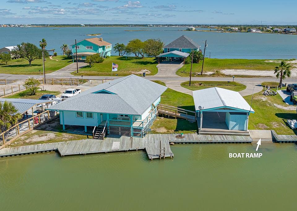 Well maintained and updated 2/2 with oversized Car/Boat Port, 2 Bulkheaded lots and Private Boat ramp. Open area of Living Room, Dining and Kitchen. Huge Pantry, Stainless Appliances, Farm Sink, Granite Counters, Tile Backsplash and Breakfast Bar. Split Bedrooms, Master Bedroom has an added room for crafts, sitting area, etc. High Impact Windows and Doors. Large in house Utility Room. Covered back deck overlooking the Canal. Fully decked on the Bulkhead and Concrete Boat ramp. Car/Boat Port with Concrete floor has a portable tack room. Circle drive for easy access! Quick Boat ride to Salt Lake then out to Copano Bay. Great fishing off of your own deck!