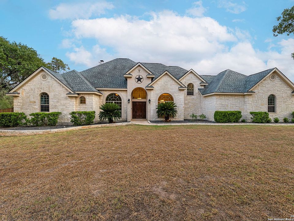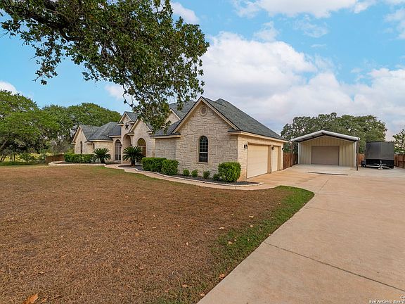Welcome to this exquisite 3293 sq ft home in La Vernia that offers a perfect blend of rustic charm and modern luxury. Tucked away in a quiet cul-de-sac on 1.05 acres, this stunning home offers the perfect blend of privacy, comfort and style. As you walk into your home you'll appreciate the high ceilings, a fireplace, and plenty of large windows for a picturesque view. You'll enjoy your bright open kitchen that flows effortlessly into a casual dining area, large living area and a formal dining room, ideal for hosting special occasions. There's plenty of space in this 4 bedroom 3 1/2 bath with new carpet. The 4th bedroom can be used as an office and/or workout room. The luxurious master suite is a private retreat, featuring a spa-inspired ensuite with a deep jetted soaking tub, walk in shower, and a large walk-in closet. Upstairs you'll find a spacious game room complete with a wet bar and full bath, perfect for movie nights, game days or hosting overnight guests. Step outside to your own backyard oasis, where relaxation and recreation meet. Enjoy a sparkling pool with a soothing waterfall, perfect for cooling off or lounging in the sun. The outdoor kitchen and bar make entertaining a breeze, while the fire pit offers a cozy gathering spot on cool evenings. For active fun, challenge the family to a game on your sand volleyball court, then wind down on the spacious covered patio overlooking it all. There's plenty of storage in your 20x20 shed that has a half bath, a loft and 50-amp RV connection. With its serene setting, thoughtful design, and resort-style amenities, this home is ideal for everyday living and unforgettable gatherings. Don't miss the opportunity to make this remarkable estate your own. This is the one. Welcome Home!