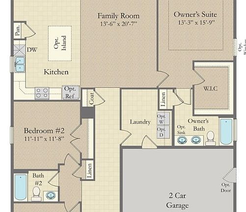 This one-story home boasts 3 bedrooms and 2 full bathrooms. You and your guests will be greeted by a long, elegant entry leading to an open kitchen and family room. Two secondary bedrooms share a hall bath with a generous laundry room close by which opens to the attached two car garage. The open kitchen offers stainless steel appliances, ample counter and cabinet space, along with a pantry. The adjacent breakfast area and family room mean plenty of space to gather family and friends. Spacious Owners Suite boasts large walk-in closet and en-suite with a double bowl vanity. Photos May Differ from Actual Home.