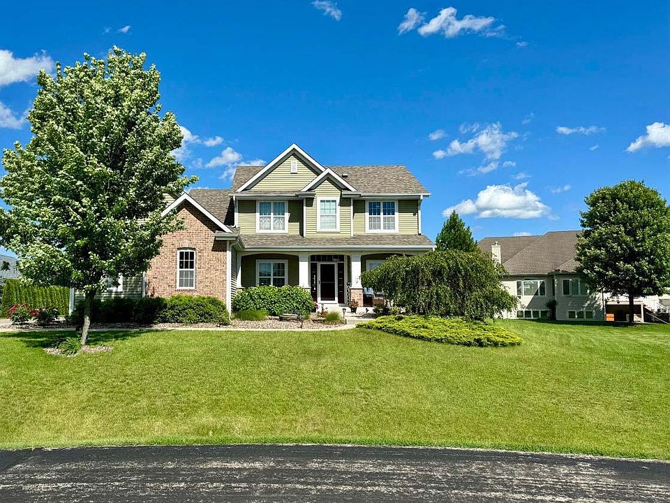 Discover this stunning 4-bedroom, 3.5-bathroom home with an inviting open concept and soaring vaulted ceilings. The living room is bright and cozy, featuring a gas fireplace. The kitchen is a chef's dream, complete with all appliances and a spacious dining area. A formal dining room is perfect for gatherings. The master suite offers a large walk-in closet and a full bath. All bedrooms are conveniently located on the upper level. The finished lower level is designed for entertainment, with a spacious rec room featuring an egress window, a wet bar, and a flexible space for a gym or bonus room. It also includes a full bathroom. Outside, enjoy the beautifully landscaped yard, complete with a swimming pool and a lovely patio. Nice trail to Utica Lake for water sports & Walking trials! NO HOA