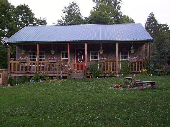 2 Bed 2 bath home on 10.30 acres. 1120 square feet with an open floor plan, vaulted ceilings, office, full unfinished basement with walk-out double doors. Front porch, full back deck. Private and secluded wooded setting. Creek and mountain views.