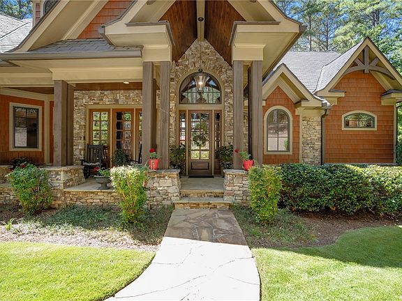 Natural stone, Hardie board shake siding, & faux slate roofing establish elegance while also making for a low-maintenance dwelling! The Zoysia grass complements the impeccable course, while magnolias, Chinese cherry trees, & azaleas characterize an inviting Southern lawn.