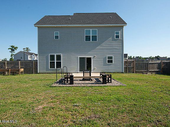 WELCOME to this beautiful 4-bedroom, 2.5-bath home in the sought-after subdivision - The Farm at Hunter's Creek. This gem sits on an outside lot bordering greenery and wooded views, offering privacy and a peaceful retreat. Yet, it's just minutes from Camp Lejeune, area schools, shopping, and local amenities—perfect for young families and professionals alike!