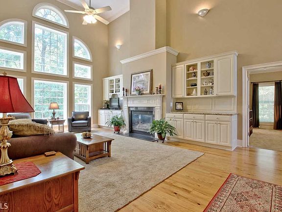 Gorgeous home ~ Great Location on 1.3 acre lot with a two story foyer entry, 8" heart pine floors, upgraded trim, large vaulted family room with a wall of beautiful windows that over look the luscious backyard, Beautiful stacked stone fireplace with built ins on both sides, Master suite on the main with an updated master bath of a large shower tiled with seemless glass, jetted tub, double sinks and private toilet with a door. On the main level the upgraded kitchen with granite kitchen with stainless appliances opens to a vaulted keeping room with a gas fireplace that lead out to a screened in porch and opens to a deck that overlooks an amazing and large paved outdoor area with a built in fire pit perfect for all your entertaining! Upstairs enjoy three large bedrooms and 2 bathrooms, one bedroom with it's own dedicated bathroom and a jack and jill bath for the other two bedrooms with each bedroom having their own dedicated sink and vanity and a loft area. The basement is finished with a bedroom, upgraded tiled shower and floors, media area, kitchen area and a ton of storage. The backyard is fenced in but goes well beyond the fenced area. This home has been well maintained and offers quality! The Neighborhood is amazing, quiet and close to shopping and downtown Newnan all with the ease of getting to the interstate!