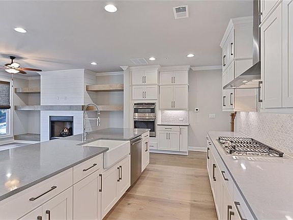 Rare opportunity in the heart of Alpharetta! Walk to downtown, Avalon or Wills Park. Dining, festivals, farmers market, all within steps! Located in East of Main, this barely lived in, luxurious townhome has everything. 2 car garage on the main level means no carrying groceries upstairs although an elevator can be installed. The gourmet kitchen boasts a large island, quartz counter tops, high end appliances, an abundance of cabinets that reach to the ceiling and overlooks the fireside family room and casual dining area.