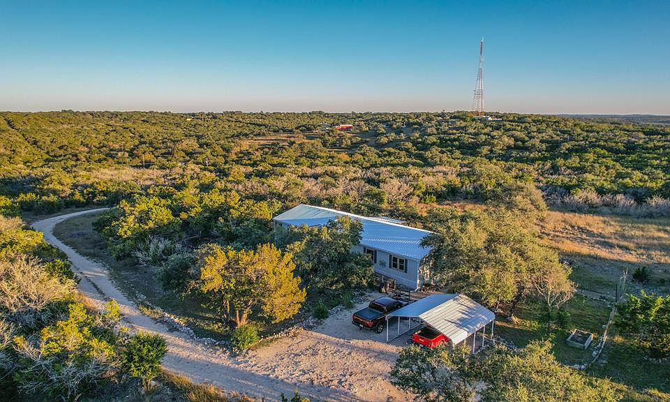 Come take a look at this spacious 4 bed, 2 bath home on over 27 acres just 15 miles from Kerrville! Enjoy seclusion and privacy on your very own piece of the Hill Country. Hunting is permitted, making this an exceptional recreational property. A nice gravel drive leads you to the home near the property's center, providing a truly private setting. The 2002 manufactured home has been well maintained and recently painted. The home has a handicap ramp as well as a step-in bathtub in the master bath. New windows and storm doors installed this year, roof replaced and septic pumped in 2019, AC replaced in 2020, new flooring installed in 2011, and a new storage building in 2016. The land is mostly raw/untouched, giving you the opportunity to truly make it your own. Call today for a private viewing!